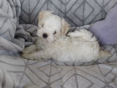 MAGGIE is an adorable Maltese puppy that loves to romp around and play! This spunky gal is vet-checked and up to date on shots and wormer. She is registered with the AKC and comes with a 1-year health guarantee provided by us If this perfect pooch is the one for you, please contact us today!